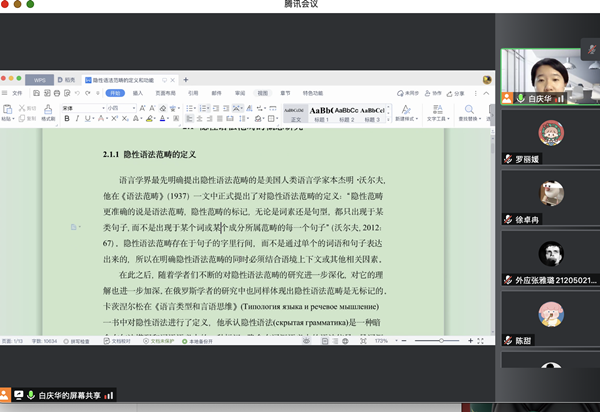 本次讲座以《隐性语法范畴研究》为主题分三次线上进行,系统地梳理了隐性语法范畴的国内外相关研究概况,对隐性语法范畴的定义、分类和功能进行详细阐述。