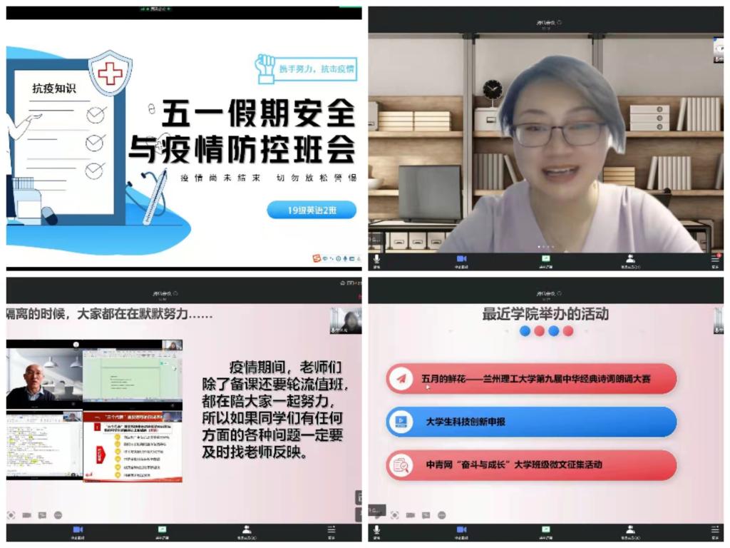 4月26日晚,k8凯发20个班级组织召开五一安全及疫情防控主题班会,院领导班子成员、班主任及全体员工参加。