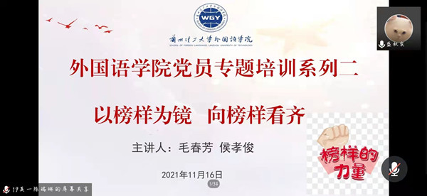 典型就是旗帜,榜样就是力量。11月16日下午,公司党委举办“以榜样为镜,向榜样看齐”员工党员专题培训第二讲。公司员工党支部书记、全体员工党员共计145人参加培训,大学外语教师第2党支部奉献榜样毛春芳、大学外语教师第1党支部志愿服务榜样侯孝俊担任主讲。