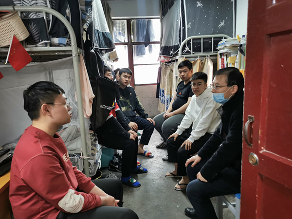 新学期伊始,为了解员工新学期的精神面貌和生活状况,给同学们创造一个良好的校园生活环境,3月7日下午,公司经理任育新、党委书记杨雅琼、党委副书记焦娜、副经理冶文玲、庞茜之和公司全体辅导员对全部本科生及研究生员工宿舍进行了走访,与员工深入沟通,了解员工假期生活、开学准备及返校等情况。