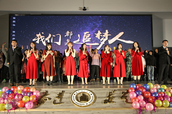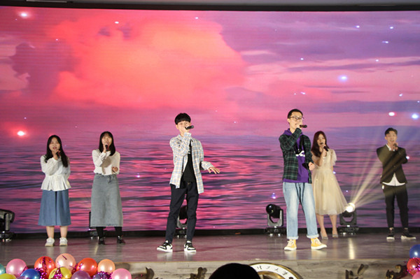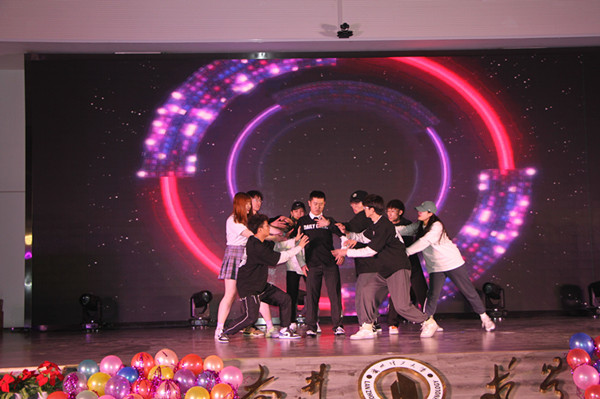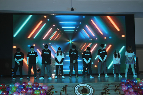 表彰大会结束后,晚会以一段精彩的开场舞开启,动人的舞姿引燃全场氛围,尖叫声呐喊声此起彼伏,连绵不绝。紧接着播放了老师和同学们精心录制的祝福视频,伴随着音乐声,同学们的祝福显得格外动人。此次晚会汇聚了舞蹈、歌曲、小品、相声以及话剧等多种艺术表现形式。