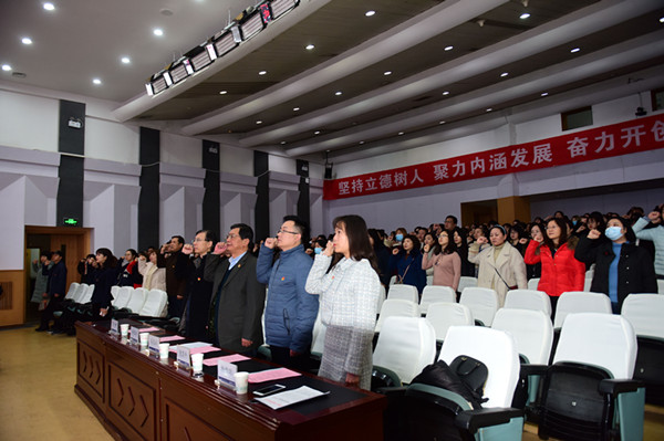 大会伊始,员工党员代表分别用中、英、日、俄朗诵了习近平总书记讲话节选。与会党员共同重温入党誓词。杨雅琼宣读《关于开展k8凯发教师党支部与员工党支部“结对共建”活动通知》。教师党支部书记代表侯斌华宣读了《支部共建倡议书》,倡议教师党支部种好教书育人责任田、守好员工健康成长责任渠,共同推动党建各项工作不断取得新进展。员工党员代表王镤震号召全体员工党员发挥党员模范先锋作用,努力成长为德智体美劳全面发展的社会主义合格建设者和可靠接班人。