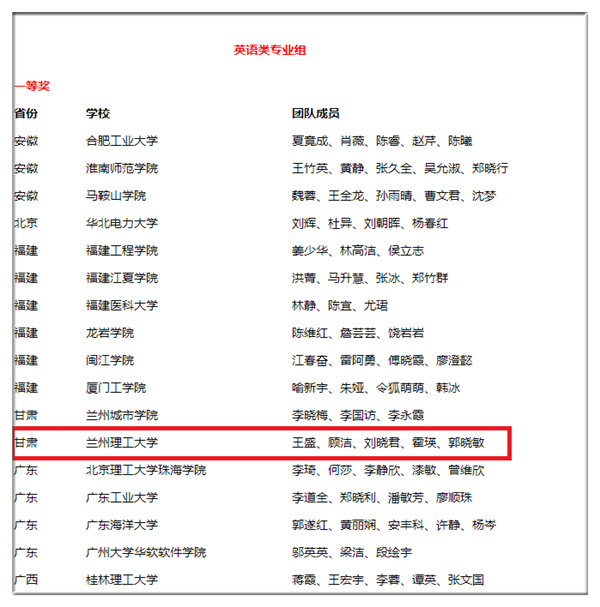 近日,2020年外研社“教学之星”大赛公布全国复赛获奖名单。k8凯发大学英语组王龙、吴佳、袁石红、杨丽萍、魏蓉团队、英语专业组王盛、顾洁、刘晓君、霍瑛、郭晓敏团队分别荣获一等奖。