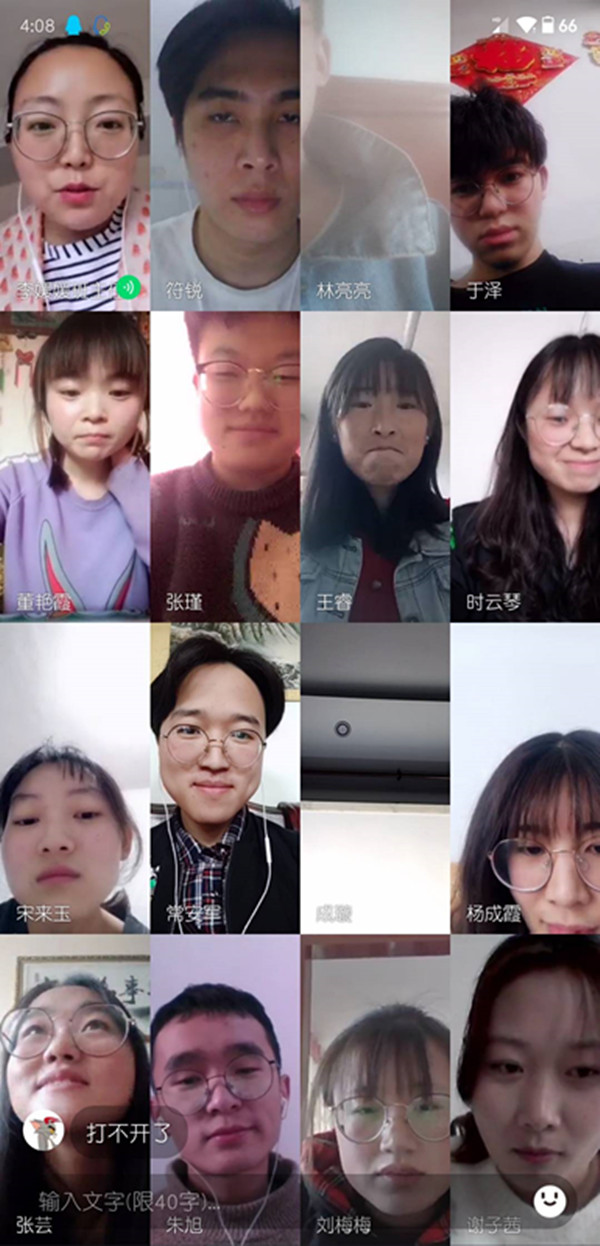 同学们通过线上见面,心情非常激动,结合自身情况以及对疫情期间的学习争先发言,纷纷表示将肩负起时代赋予的使命,坚定与人民共患难,与祖国同命运的决心;同时,大家也表示要保持好心态、重防护、勤消毒、少出门,配合好防控防疫举措的同时安排好自己的学习生活,为夺取抗击疫情斗争的胜利作出自己应有的贡献。