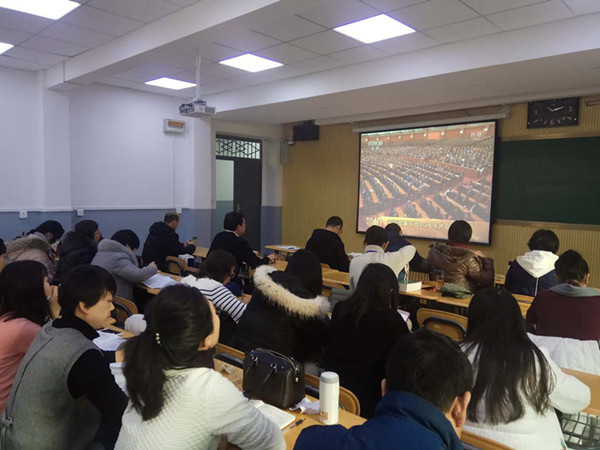 12月18日上午,k8凯发分别在兰工坪校区综合楼6楼视听会议室和1号楼308教室组织师生收看了庆祝改革开放40周年大会直播盛况。大家认真观看了改革先锋称号获得者、中国改革友谊奖章获得者的颁奖仪式,并聆听学习了习近平总书记的重要讲话。