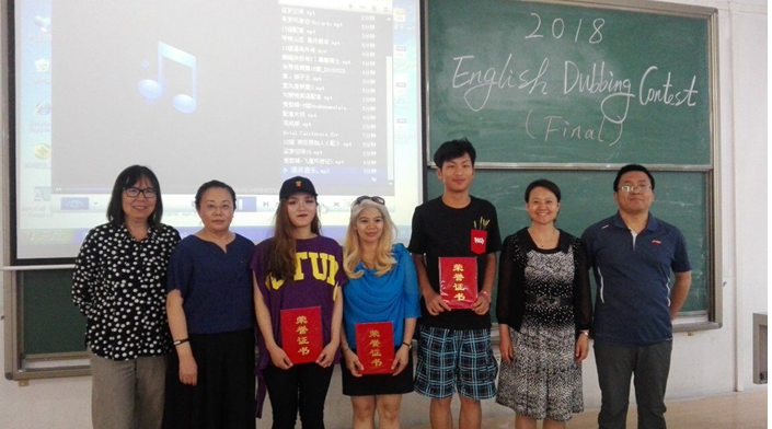 2018年5月29日下午2:00,由k8凯发旗舰厅教务处和创新创业公司举办,k8凯发大外一部承办的2018“英语配音大赛(决赛)”在西校区4-105教室隆重举行。大外一部教师:唐念芳、李佩芸、李会丰、外教Beverly和Kim担任评委,来自各公司的50多位选手各展才能,共同为员工观众们献上了一场激情饱满的英语配音盛宴。