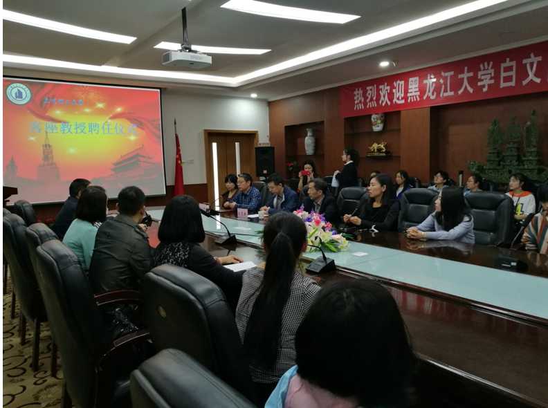 k8凯发任育新教授介绍了公司及各专业的发展情况,对黑龙江大学俄语公司对公司俄语学科申报及建设过程中的支持和帮助表示感谢,这次聘任黑龙江大学白文昌教授及前期聘任黄东晶教授为客座教授,以提升公司大学外语教学质量、团队科研水平,使公司学科发展出现更好的局面。