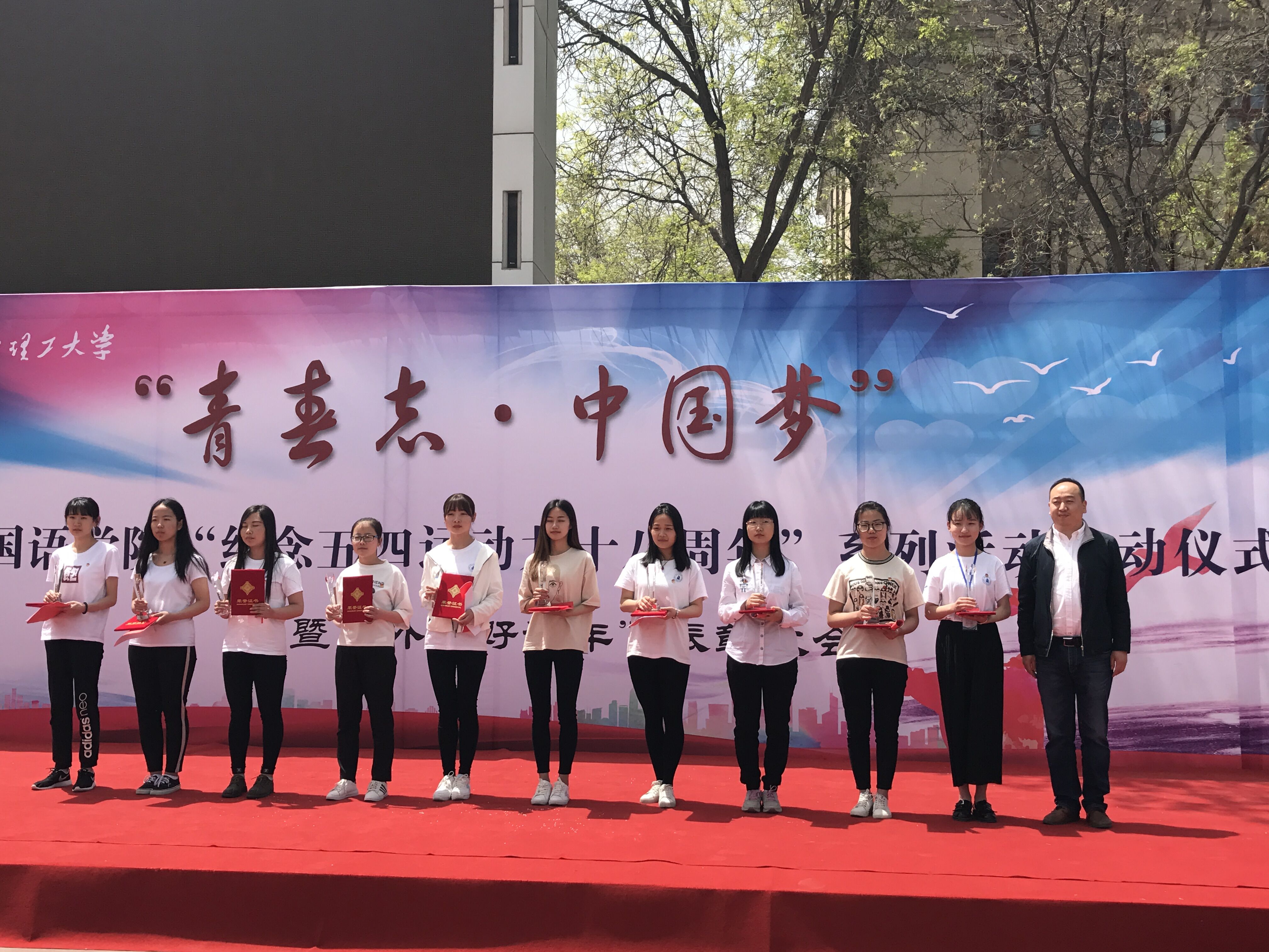 ,k8凯发在校本部举办“纪念五四运动九十八周年”系列活动启动仪式暨“外院好青年”表彰大会。大会以“青春志