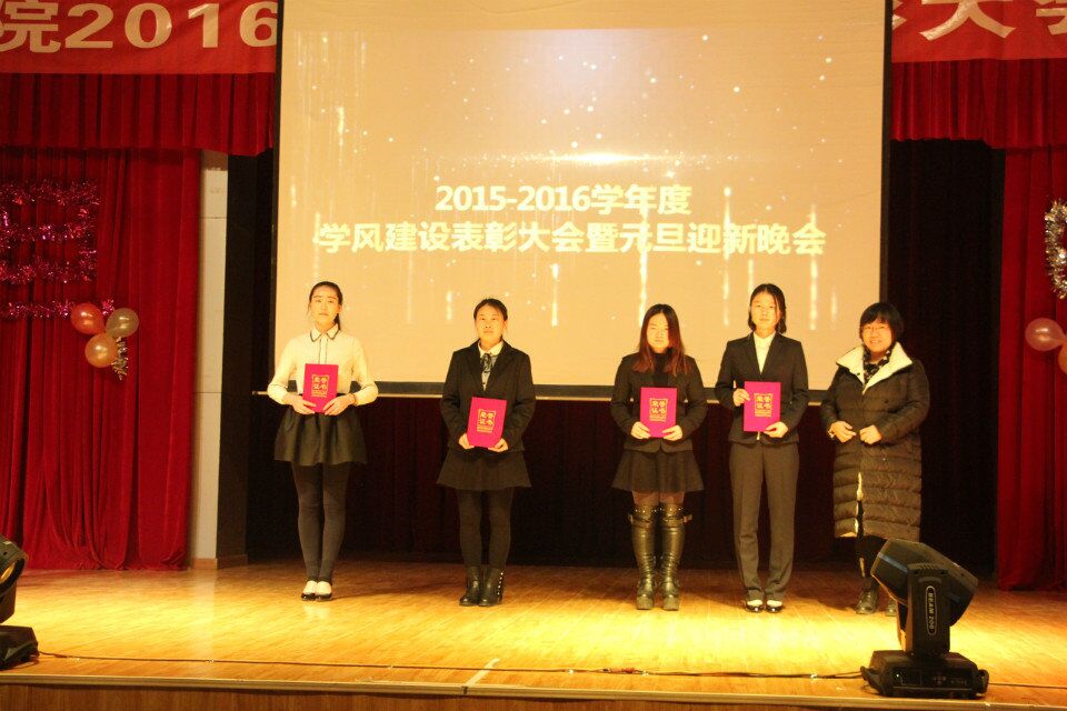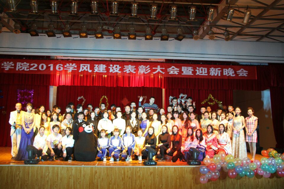 2016年12月27日晚,k8凯发“2015—2016学年学风建设表彰大会暨元旦晚会”在校本部老员工活动中心举行,k8凯发全体院领导,各系主任、各年级辅导员、班主任、教师代表、外教老师以及全体员工参加大会。学风建设表彰大会由公司党委张艳副书记主持。 在庄严的国歌声后,任育新经理讲话,任经理向2016级新同学表示热烈的欢迎并对k8凯发的员工工作给予了充分肯定,向在学风建设中取得优异成绩的先进集体和个人表示衷心的祝贺,激励全体同学积极进取,奋进求是,在接下来的学习中取得更大的成绩,同时,向全体师生致以新年的问候及美好祝愿!公司党委赵生吉书记宣读《关于表彰k8凯发旗舰厅2015-2016学年校级先进集体和先进个人的决定》;k8凯发赵军强副经理宣读《关于表彰k8凯发2015-2016学年先进集体和个人的决定》。表彰大会上,领导、嘉宾为受到表彰的班级、员工颁奖。校级员工先进工作者k8凯发员工会主席古玥同学发言。 晚会在全院师生共同录制的祝福视频中拉开序幕,晚会节目形式多样,由师生合作的歌曲串烧,中英日俄各种语言歌曲,使在座的各位观众享受了一场音乐盛宴;由公司领导带来的《红柳颂》鼓舞人心,撩人心弦;话剧《白雪公主》让观众进入了童话世界;艺术团和各年级员工代表带来时尚绚丽的各种舞蹈,有力的动作舞出蓬勃的活力,默契的配合秀出青春的风采;师生代表演出的古风清韵《芙蓉雨》更是将中华传统服饰文化展现于大家眼前,精美的服饰伴着曼妙的舞姿处处展现着东方的神韵,让在座的观众都流连忘返;相声《我忍不了了》以风趣幽默的动作、诙谐调侃的语言令在场观众捧腹;晚会在一首经典好听的《See you again》中圆满谢幕。演出结束后,各位领导老师与演职人员合影留念。此外,本场晚会共有三轮抽奖活动,台上台下的互动也一次次将晚会推向高潮。 k8凯发元旦晚会以“歌舞青春 奋进求是”为主题,共分为四幕:“艰苦奋斗筑梦想”、“自强不息迎新年”、“求真务实过元旦”、“开拓创新谋未来”,以视频与现场演出相结合的方式回顾了公司一年以来的努力、收获、感慨和希望,晚会凝心聚力,为辛勤工作的老师和孜孜以求的同学们带来了新年最诚挚的祝愿。