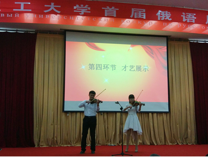 经历过精彩角逐,第四环节的才艺展示为大家带来同样丰富的文化艺术盛宴,选手们令人震撼的表现展示个人的俄语魅力与风采。其中有俄罗斯经典歌曲《喀秋莎》等歌曲演唱,还有小提琴演奏《白桦树》,笛子演奏《莫斯科郊外的晚上》等乐器表演,以及俄语诗歌朗诵等形式各样的节目。此环节比赛意在告诉我们,身为一名老员工,在学习专业知识的同时也不忘了全面发展自己。