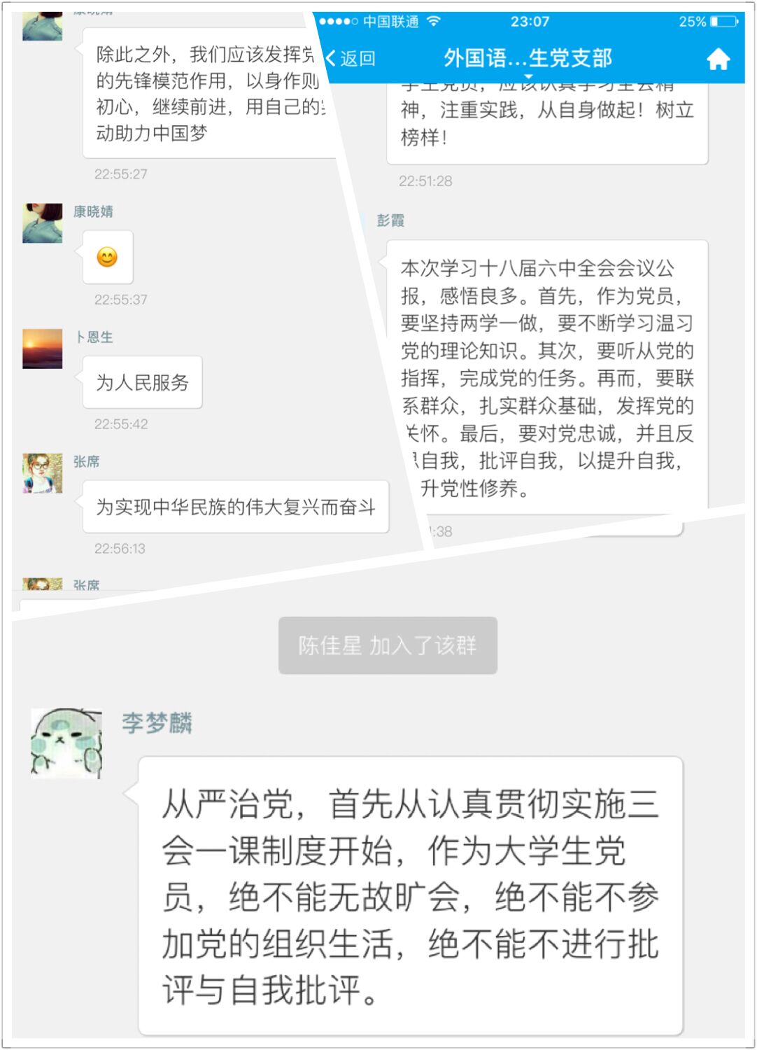 期间,k8凯发各党支部还将集中学习、线上交流及线下讨论等多种形式相结合,员工党支部于11月17日晚组织全体员工党员在集中学习后进行易班平台的交流发言,大家从自身的政治理论学习情况、增强党员看齐意识及寝室文明建设等方面交流了“十八届六中全会精神”的学习体会,员工党员纷纷表示,一定要做到认清形势、坚定信心,严守纪律和规矩,树立正确的世界观、人生观、价值观,在今后的学习、生活中踏实进取、夯实基础、扎实学习,肩负好员工党员的责任和使命,为实现中国梦贡献青春智慧和力量。 |