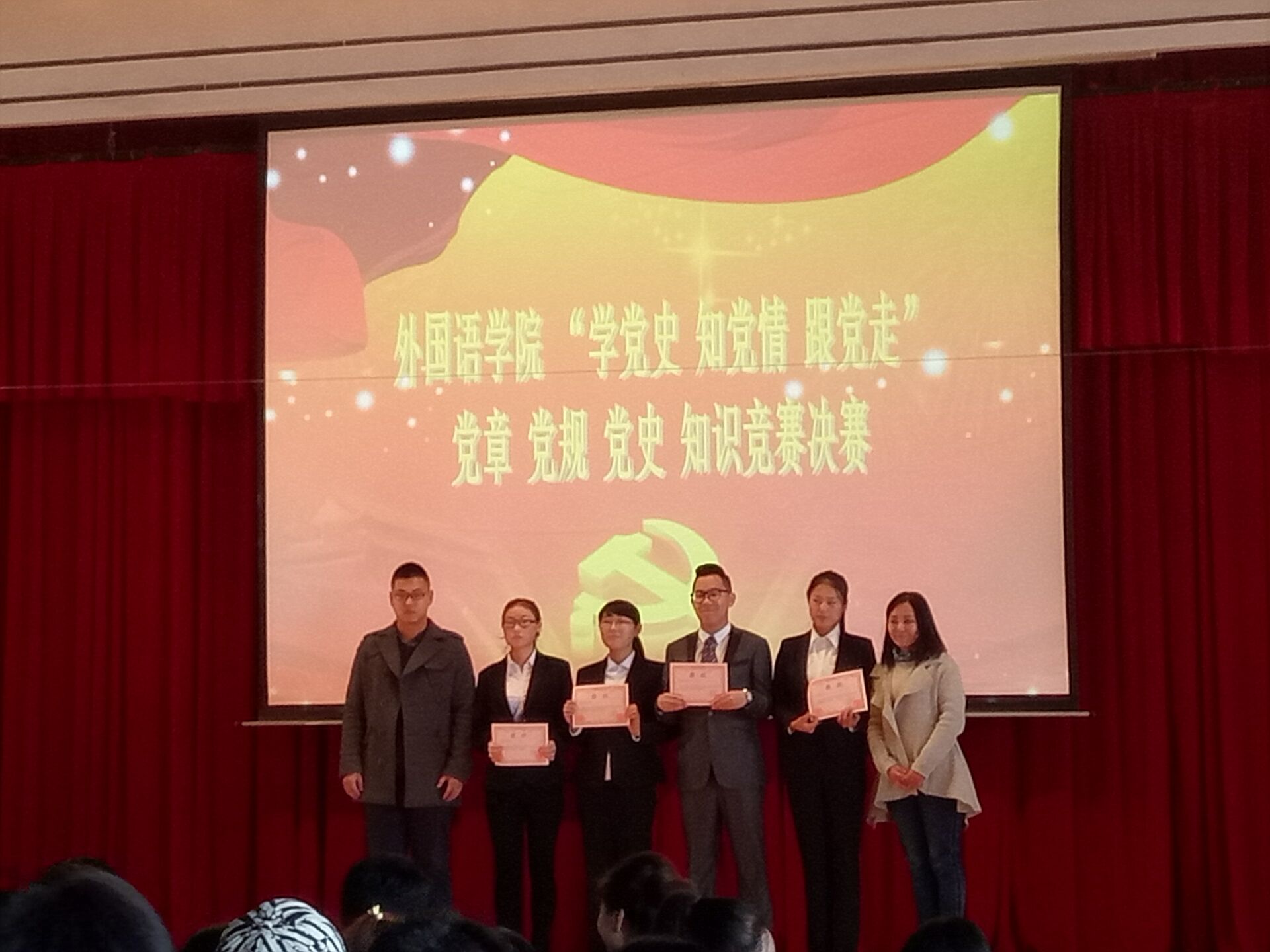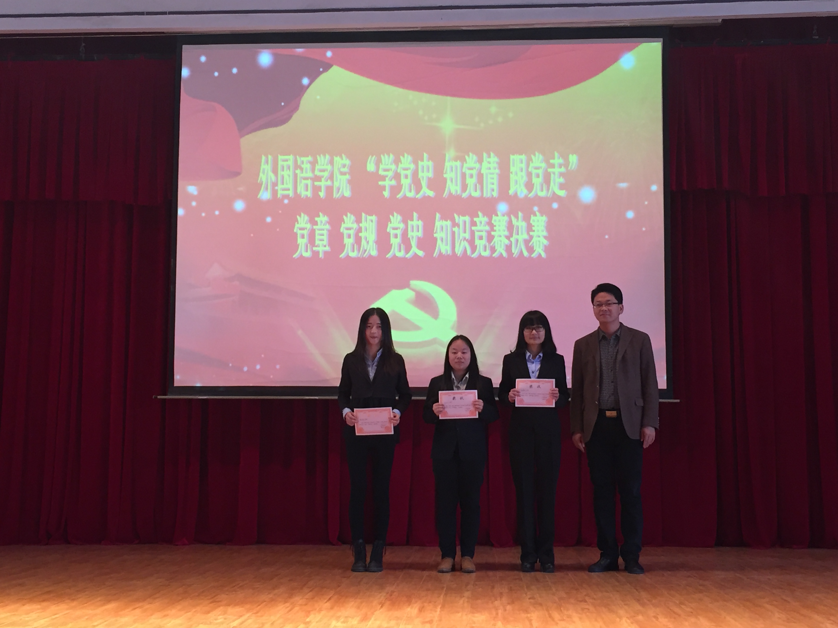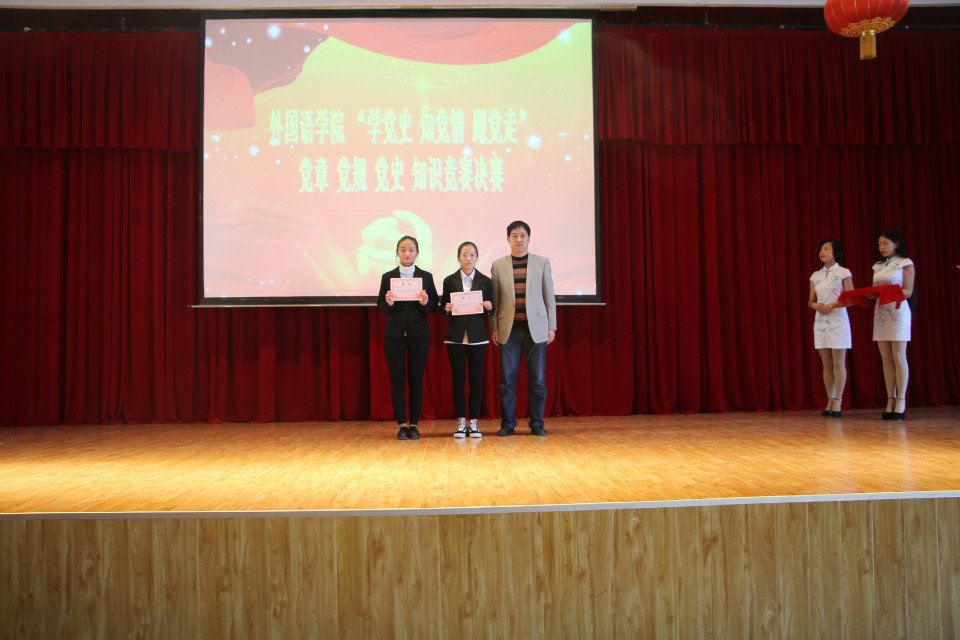 为了进一步落实“两学一做”学习教育,提高员工党员的思想觉悟,完善员工党员的党务知识体系,加强员工党员、积极分子与党组织的联系,巩固“两学一做”专题教育成果,由k8凯发举办的“学党史 知党情 跟党走”党章党规党史知识竞赛决赛于11月1日在校本部老员工活动中心成功举行,校团委王正民书记、校办齐伟健副主任、公司党委赵生吉书记、张艳副书记、本科生第一党支部毛春芳书记、本科生第四党支部端木令曦书记,担任大赛评委及颁奖嘉宾,本科生各党支部书记、副书记、全体正式党员、预备党员、积极分子、2016级全体同学观看比赛。 本次竞赛,各班级分别选拨3名同学组成参赛代表队伍,分为初赛和决赛两个环节。初赛采用笔试形式,于10月10日下午举行,经过激烈角逐,14级日语2班、16级俄语班、16级英语2班、14级日语1班、14级英语1班、15级英语1班、14级英语2班、15级日语1班、15级俄语班、16级日语1班十支参赛队入围决赛,决赛由必答题、抢答题、风险题、简答题和观众互动题组成,内容包括党章党规、习近平总书记系列重要讲话和党史等,涵盖了部分党建和作风整顿内容,有广度有难度,能够充分展现参赛选手的知识水平。经过激烈的比拼,最终,2014级日语2班获得大赛一等奖,校团委王正民书记为获奖团队颁发了荣誉证书。校办齐伟健副主任对比赛进行了现场点评,他表示,k8凯发此次竞赛既是对“两学一做”学习教育成果的展示,也是对“两学一做”学习教育的有力推动,充分肯定了各参赛队的积极参与,赞扬了参赛队员在竞赛中的优秀表现,并给与了高度评价。决赛前,公司党委书记赵生吉来检查大赛准备情况,提出四点要求:一是认识到位、分工合作,二是周密组织、周密安排,三是公开公平、优中选优,四是强化培训、赛出水平。 据悉,k8凯发自深入开展“两学一做”学习教育以来,不断丰富学习形式,巩固学习成果, 本次大赛为系列活动之一,旨在通过知识竞赛的方式提高同学们的党员意识和党性修养,引领广大同学“学党史、知党情、跟党走”,掀起新一轮的“两学一做”热潮,过程中,全院各班积极参与,参赛选手中有本科生正式党员、预备党员和积极分子,充分体现出了党的集体性,参赛选手认真准备,展现了积极进取、昂扬向上的精神风貌,真正达到了以赛促学、以学促做的目的。