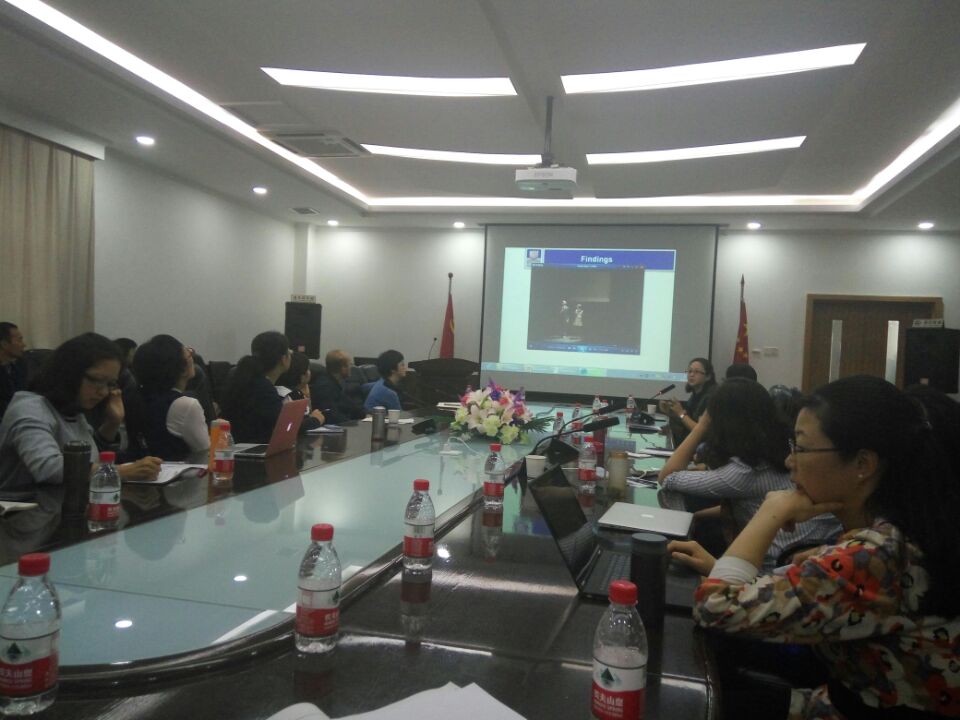 9月28日上午,陈桦教授一行从“三三制培养模式”入手,介绍了南京大学英语教学改革与实践,并结合公司大学英语教改工作,从课程设置、专门用途英语(ESP)课程教学等方面提出了意见及建议。在下午的报告中,陈桦教授更是现身说法,通过详实的视频资料,分享了她在口语课程实践教学中配音教学的成功经验。