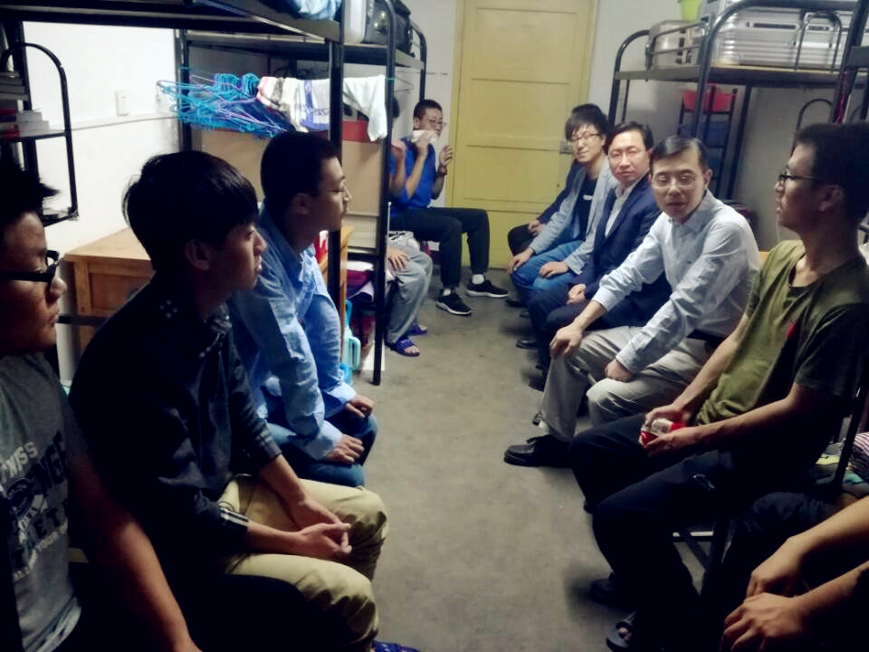 9月14日晚,k8凯发经理任育新、党委副书记张艳、副经理朱景梅、副经理赵军强及全体辅导员、班主任老师、员工干部走进宿舍,为2016级新生送去中秋祝愿。公司领导、老师与新生亲切交谈,细致地询问同学们进校后学习生活情况,并嘱咐他们要尽快适应老员工活,全身心投入到学习中去,同时也提醒同学们要团结友善,照顾好自己,学会关心同学,和谐相处,有效沟通,在即将到来的中秋节前夜代表全院教师送去了对同学们中秋节的美好祝愿。过程中,同学们认真聆听并积极与老师们互动,对大学寝室生活、学业发展有了进一步的认识,期间,同学们不时回报以热烈的掌声,并对公司无微不至的关怀表达了感谢,他们表示一定严格遵守公司的各项规章制度,努力学习、互助友爱,不辜负公司领导老师的期望。