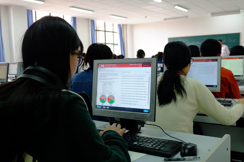 2016年4月19日下午,外语公司在西区A馆语言实验中心成功组织了雅思模拟机考,该考试是由剑桥大学考试委员会及剑桥大学出版社ELiT实验室提供技术支持的一次免费在线模拟考试。全校2014级和2015级部分本科生、2015级部分硕士研究生共350余名同学自愿报名参加了雅思模拟机考。