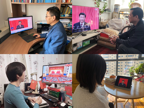 教师党支部书记丁翠萍表示,“此时此刻我怀着激动的心情观看着中国共产党第二十次全国代表大会会议直播,会议上习近平总书记代表中国共产党第十九届中央委员会做了精彩的报告。听着习近平总书记的报告让我欢欣鼓舞,信心百倍。习近平新时代中国特色社会主义思想作为我们踔厉奋发,勇毅前行的指导思想,让我们坚信伟大的中国共产党必将带领全国各族人民实现中华民族的伟大复兴。做为一名党员,我要以此次大会精神做为前进的动力,成为这一思想的践行者,做好本职工作,为‘两个一百年’奋斗目标贡献自己的力量。”