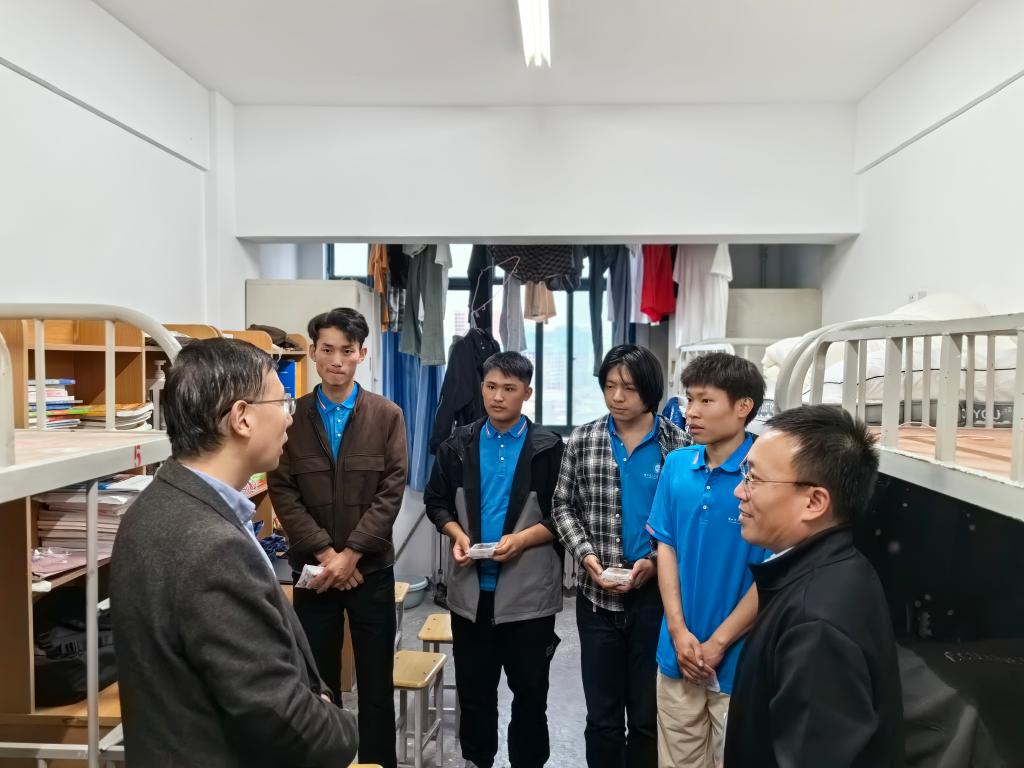 在中秋节国庆节到来之际,为了让员工度过温馨的“双节”,9月26日,公司领导班子、辅导员和班主任老师深入新生宿舍走访慰问,为同学们送上节日的祝福。