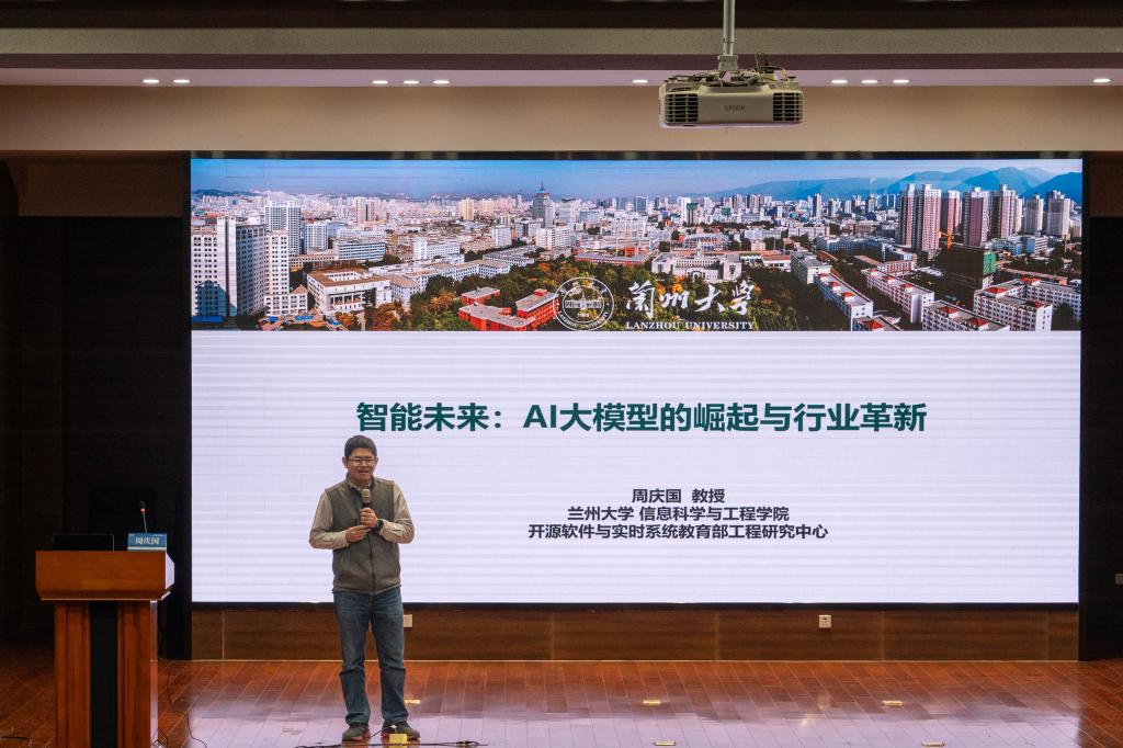 兰州大学周庆国教授以《智能未来:AI大模型的崛起与行业革新》为题作了专题讲座。讲座全面概述人工智能(AI)的基本概念、发展历程、应用领域以及未来发展趋势,通过对AI的理论、设计、开发和应用等方面的探讨,揭示AI如何模拟人类智能实现智能化决策和处理。其次就AI在教育、交通、农业等领域的应用案例进行分析,展现了AI技术的强大和广泛的应用潜力。最后详细介绍AI大模型技术的发展历程和优劣势,并深入分析大模型对语言学习者带来的挑战和启示。周庆国表示,无论技术如何发展,只有文化才能真正打动人心,外语专业的师生要充分发挥自己的学科优势和潜力,同时也要突破文科思维模式,促进科技与人文的融合,就一定能找到适合自己的创新发展路径。