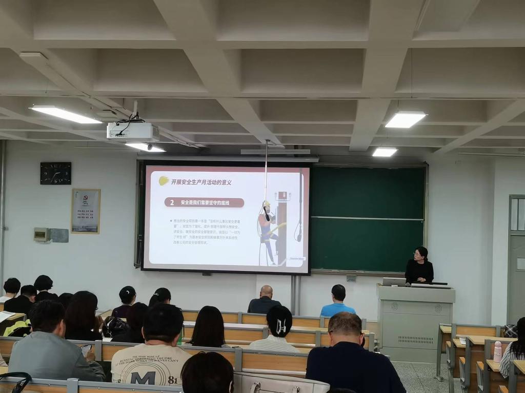 冶文玲副经理为参会教师进行消防安全知识培训,重点围绕开展 “安全生产月”活动的重要意义,应对火灾所必须具备的“四个能力”等,结合近期发生在国内高校校园的消防安全案例,从避免火灾发生、发现火灾隐患、灭火自救逃生等方面进行了详细地讲解。