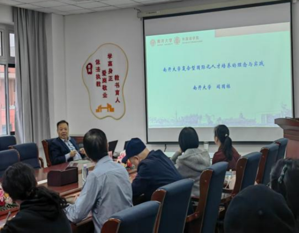 2024年11月11日上午,k8凯发邀请南开大学k8凯发经理阎国栋教授在k8凯发旗舰厅彭家坪校区文理楼k8凯发会议室作题为《复合型国际化人才培养的理念与实践》的讲座。讲座由k8凯发经理任育新教授主持,公司班子成员、研究生及部分教师参加。